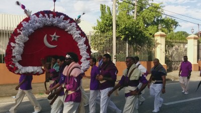 Hosay, derived from the name Husayn, is a religious ceremony observed by Shi’a Muslims. Husayn and Hassan were assassinated by Yazid in the Battle of Karbala, 680 AD. This Battle of Karbala is commemorated throughout the world during a ten-day period held every Muharram (called the Mourning of Muharram), and it culminates on the tenth day known as the Day of Ashura. In the Caribbean, mainly Trinidad and Tobago, the Day of Ashura is commemorated as Hosay. The events are observed by fasting and prayer, construction of “tadjahs” and processions.